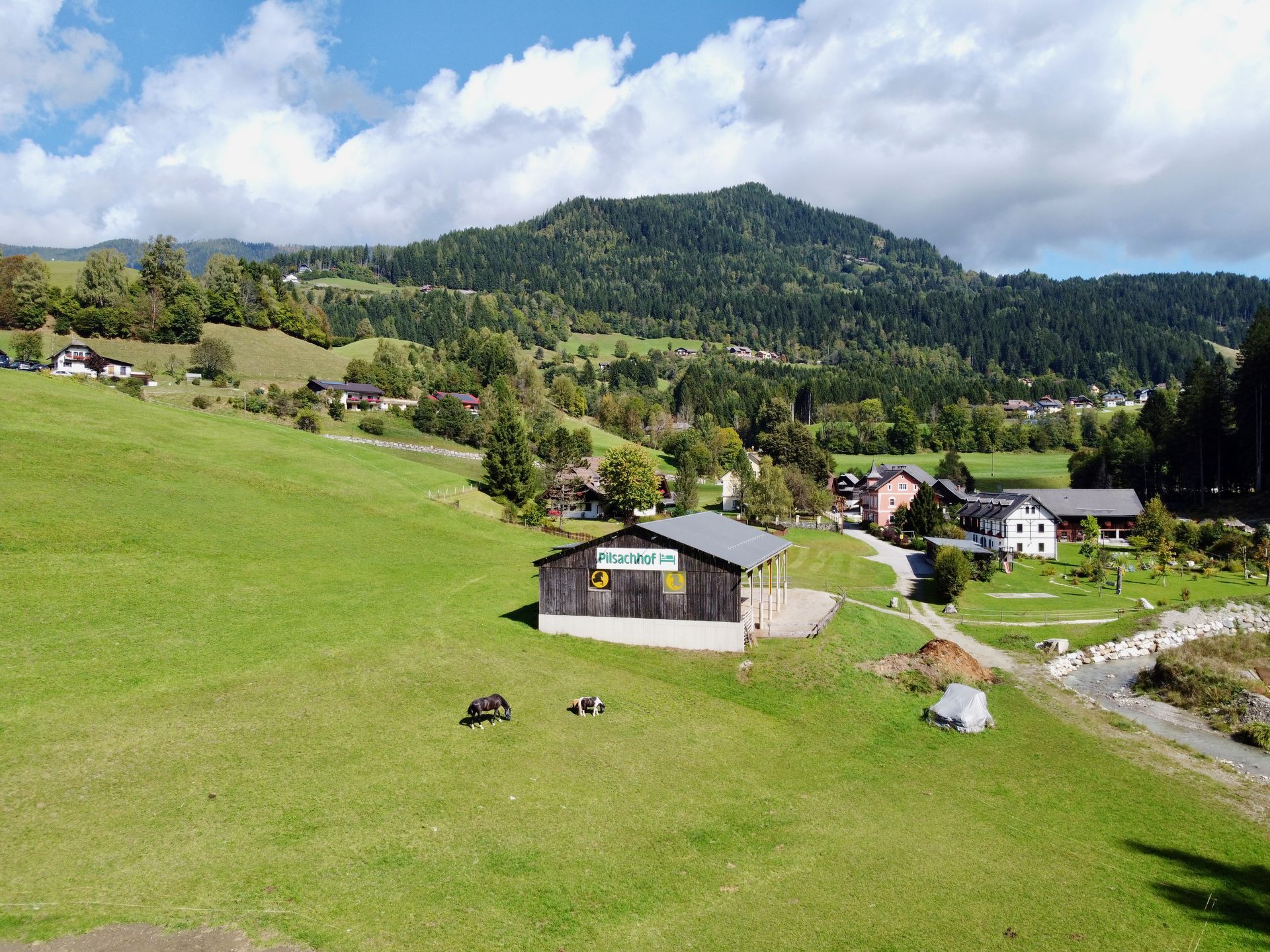 Der Pilsachhof ist ein Ort von seltener Schönheit und besonderer Energie. Dieses historische Anwesen vereint architektonischen Charme mit großzügigen Nutzungsmöglichkeiten und eignet sich sowohl als Gästepension wie auch als Reiterhof. Auf rund 1.000 Quadratmetern Wohnnutzfläche finden sich insgesamt 30 Betten, verteilt auf eine historische Villa und eine alte Schmiede. Ergänzt wird das Ensemble durch Stallgebäude mit Pferdeboxen, Heulager und eine Reithalle mit angrenzender Weide.