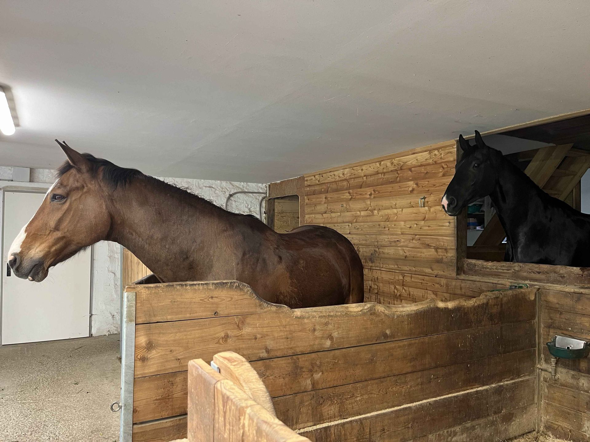 Das Stallgebäude umfasst im Erdgeschoss eine Werkstatt sowie einen Pferdestall mit derzeit vier Boxen, der auf sieben Boxen erweitert werden kann. Im Obergeschoss befinden sich ein Heulager und ein Abstellplatz.