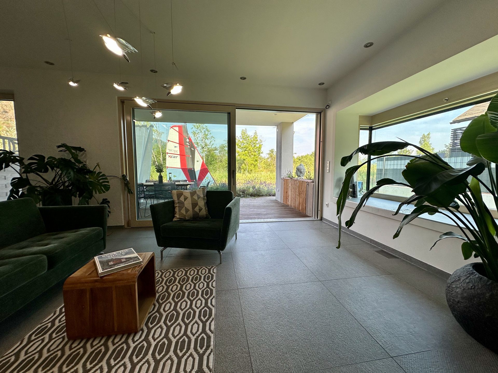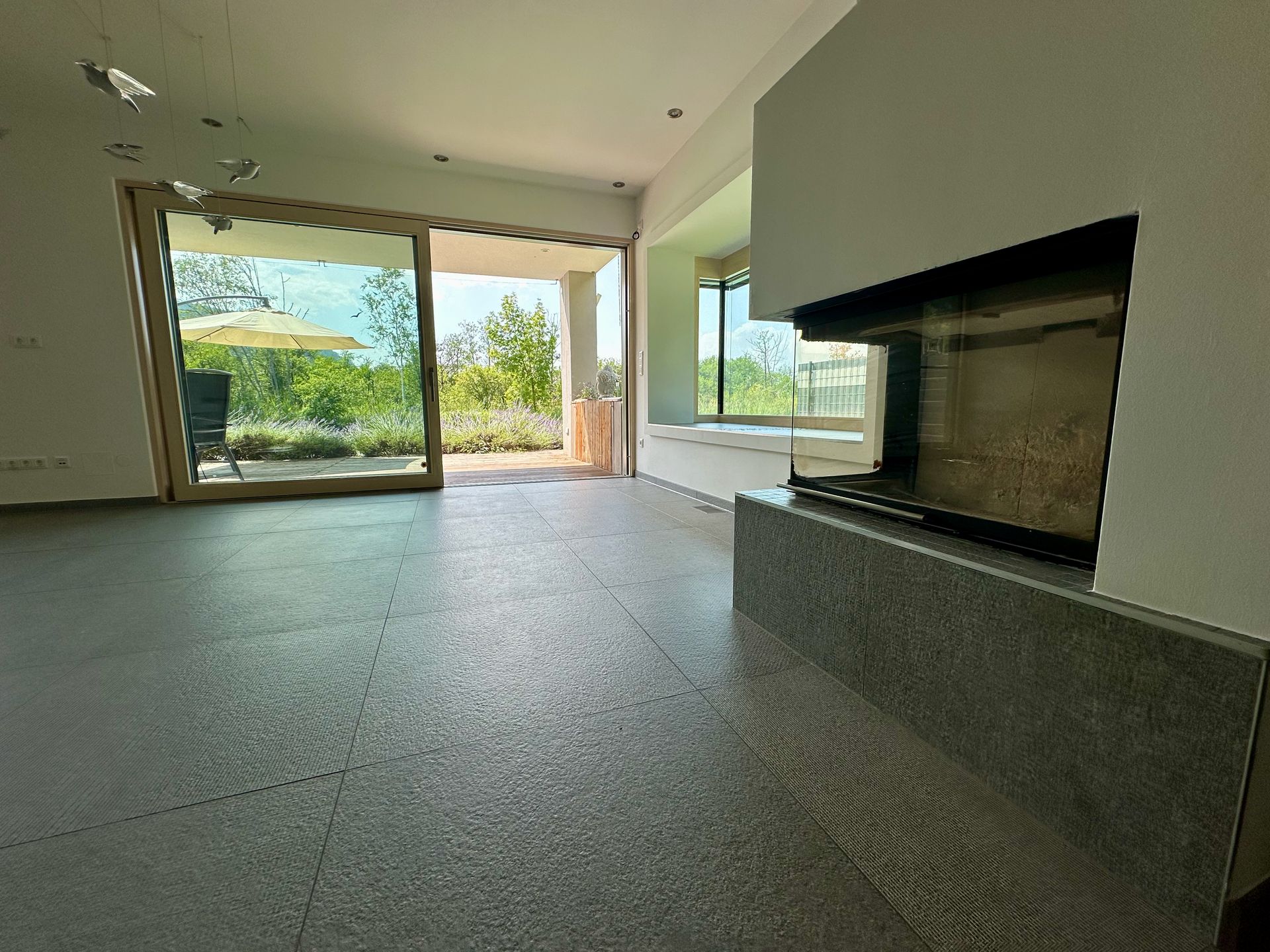 Das Gebäude wird mit einer Luftwärmepumpe beheizt bzw. gekühlt und verfügt über eine PV-Anlage am Flachdach. Die Verrohrung für eine Wohnraumlüftung ist vorgesehen.